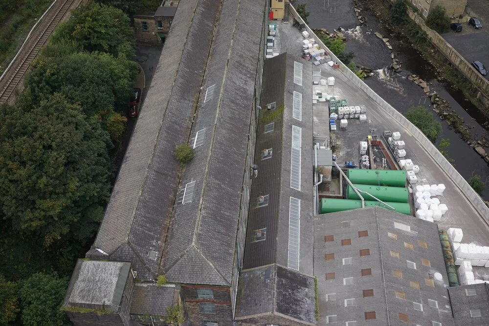 An old mill above the river calder, this building was a classic turn of the century mill which had been neglected for 100 years. Being a productive working factory, there was a range of issues that needed to be avoided during the essential roof repair work. Importantly, the main access road could not be closed, the factory could not stop its operations and the complicated layout of the factory would require an expensive design and build scaffold. Multiple falling slates posed a danger to factory operatives and serious water ingress was causing internal structural damage, therefore extensive roof works were essential to keep the factory open and an urgent solution was required.