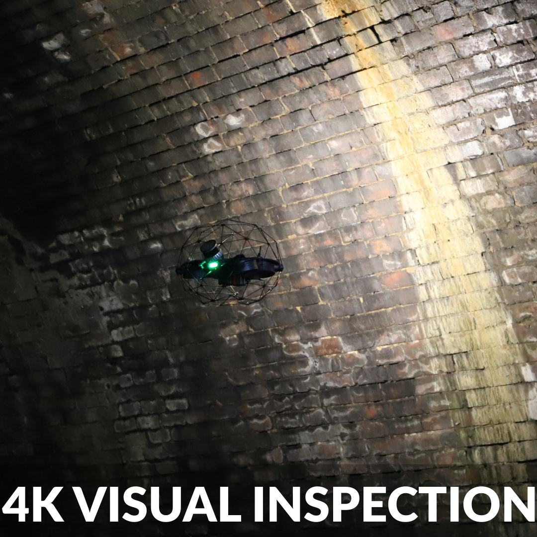 Collision Resilient Cage: An omnidirectional carbon fibre cage protects your critical assets and our equipment from impacts, allowing pilots to roll the drone along internal surfaces to capture close-up data.