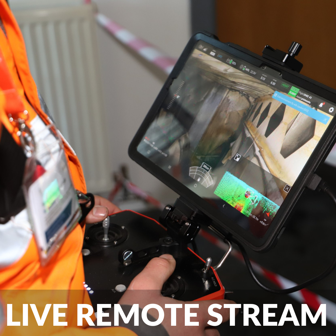 Securely stream the drone's live feed to your engineers in a safe zone, allowing for collaborative, real time decision making on site.