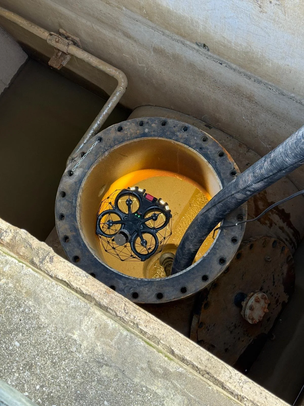 The tether also provides an additional physical safety layer in critical environments, allowing the operator to maintain a positive connection to the drone throughout the survey and retrieve it reliably from deep within the asset.